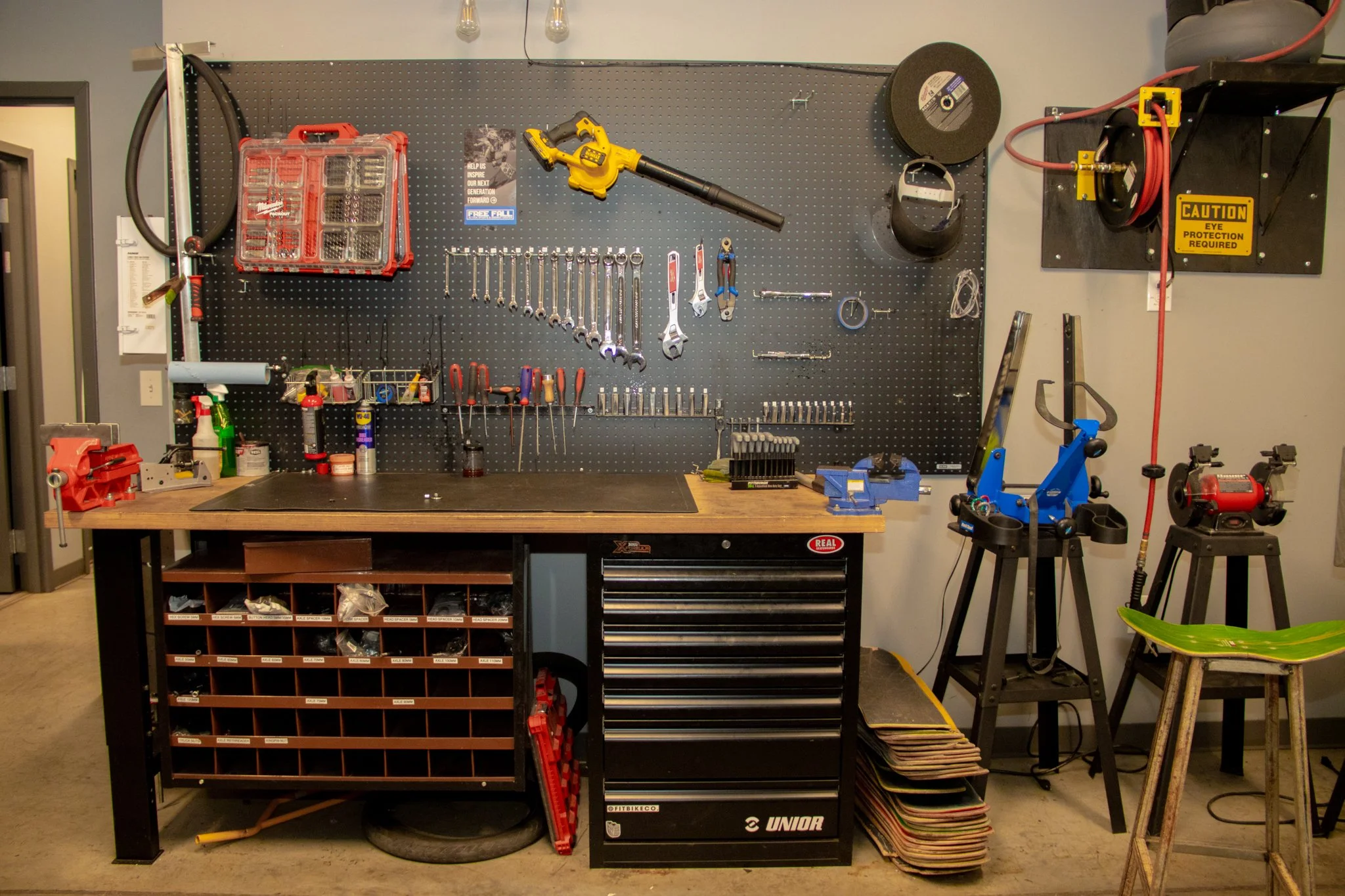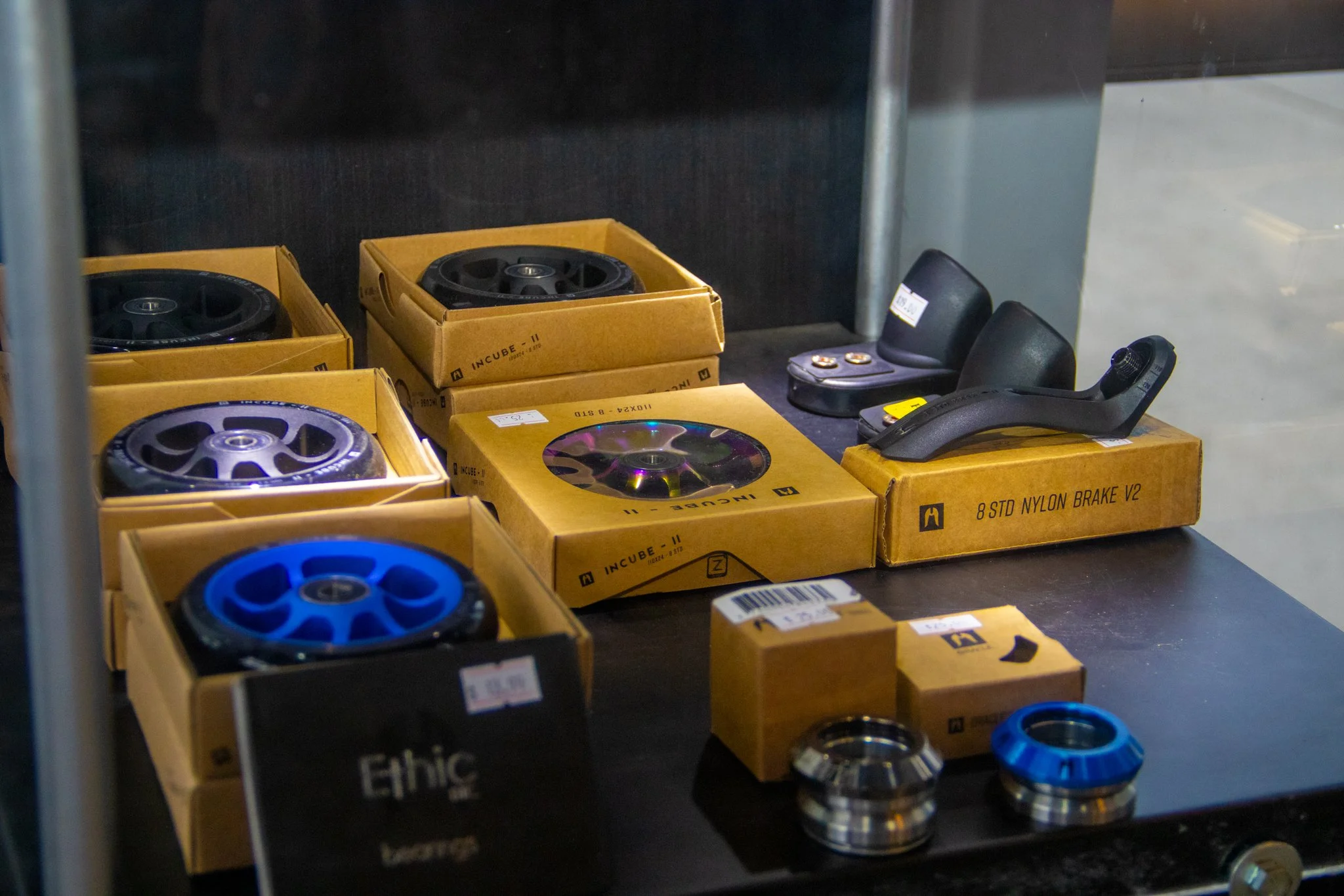 We have a parts counter and a wall full of BMX, scooter, and skate parts to help you out. Expect complete scooters, scooter wheels, bearings, grips, skate decks, hardware and more. You can assemble it in our tool shop, with staff standing by if you need assistance.